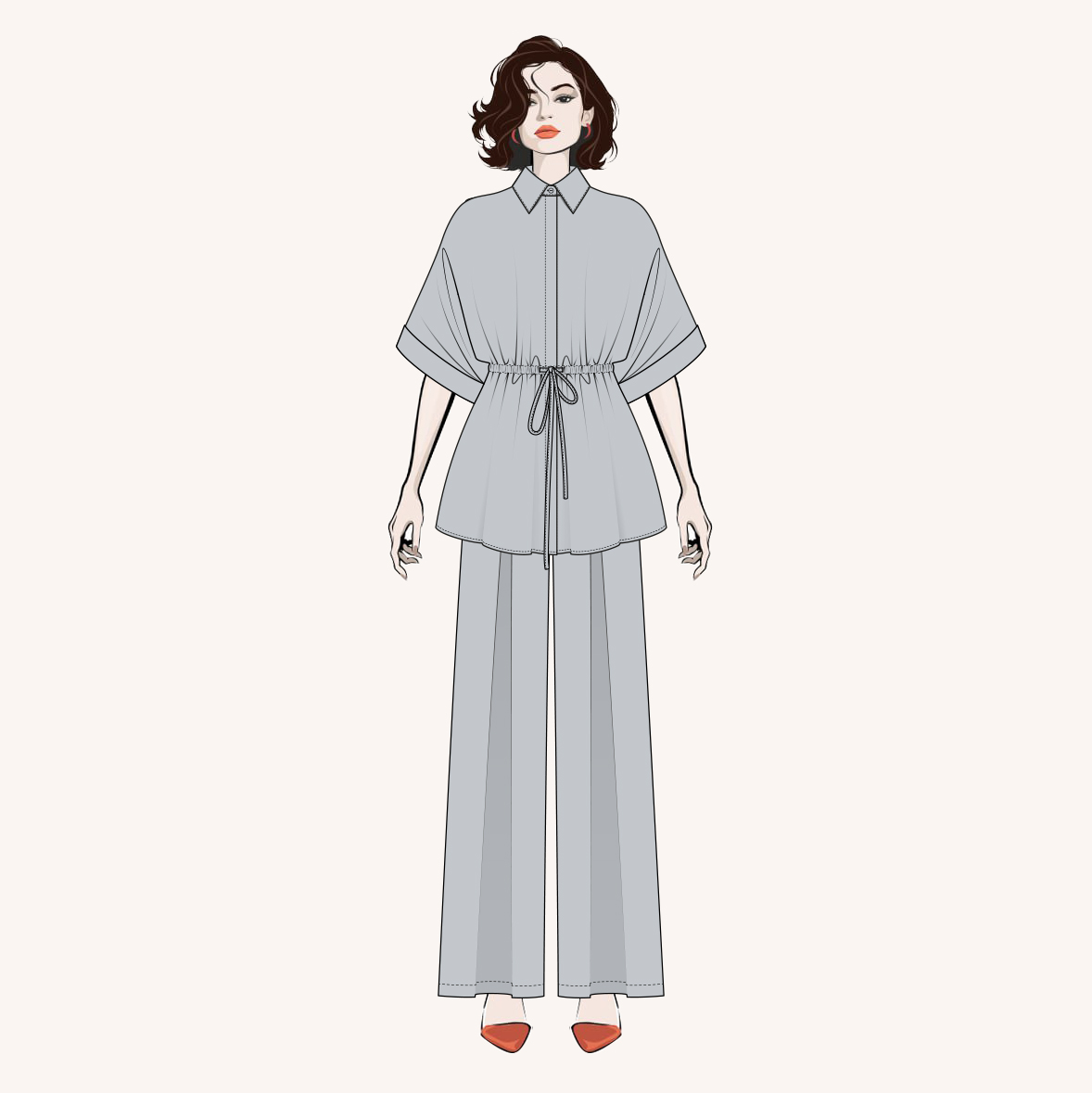 Для пошива изделия подойдут ткани сорочечной, плательной группы, обладающие следующими свойствами: умеренная плотность, пластичность, гигроскопичность, мягкость, нерастяжимость или малорастяжимость.