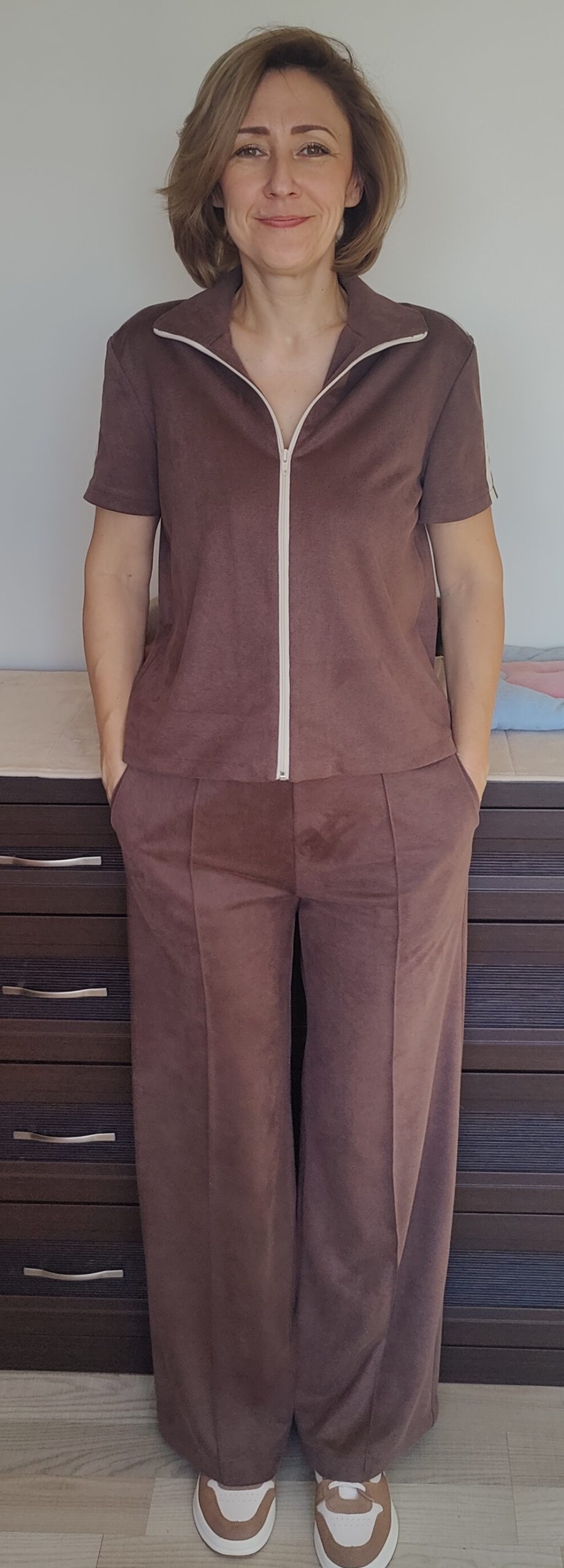Всем добрый день! То, что нужно мне было под спортивные брючки! Лампасы сделала один широкий. Мои размеры 96-78-102, брала 48 размер. По мне ни широко, ни узко, в самый раз. Ткань трикотаж диагональ, не футер.