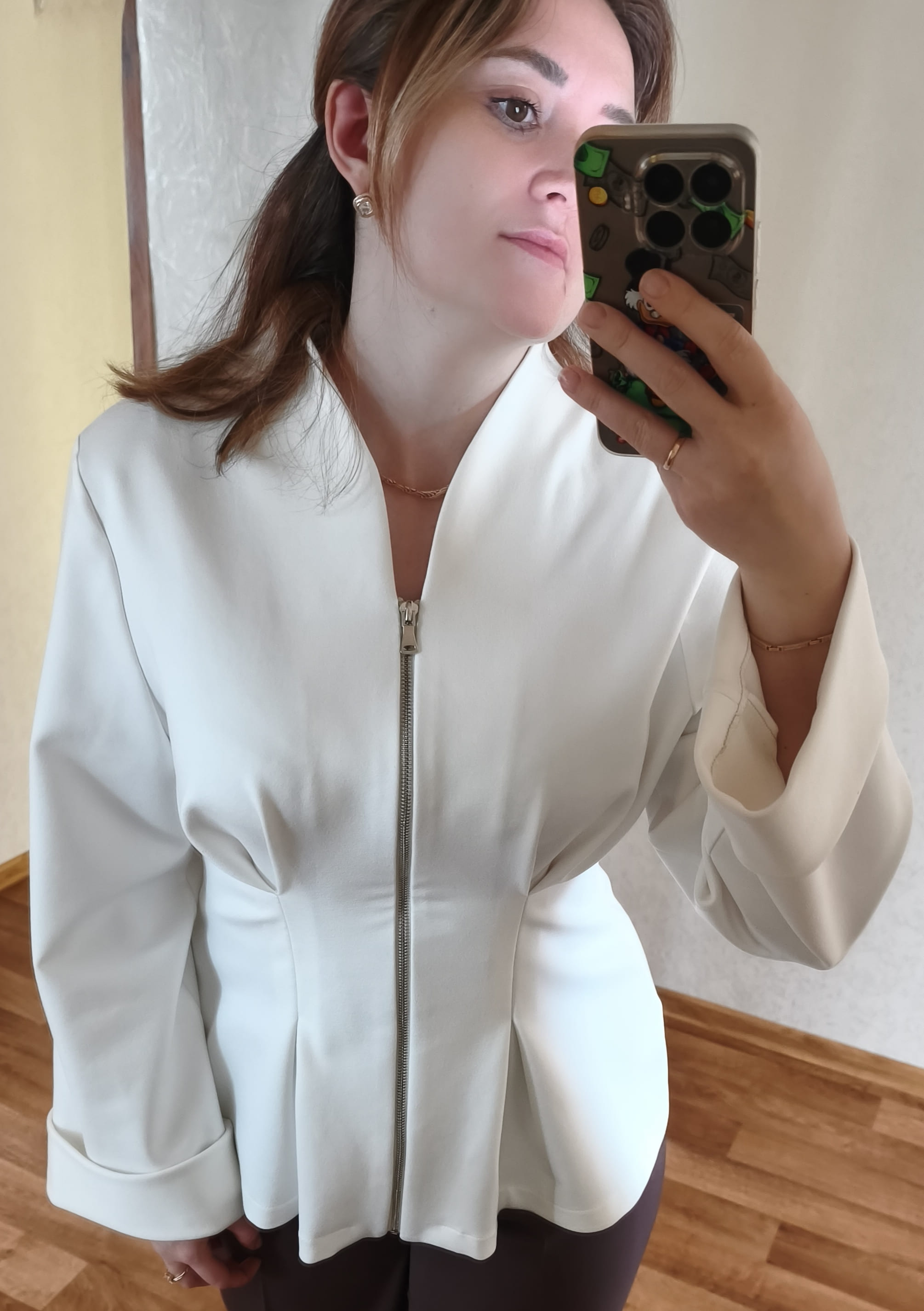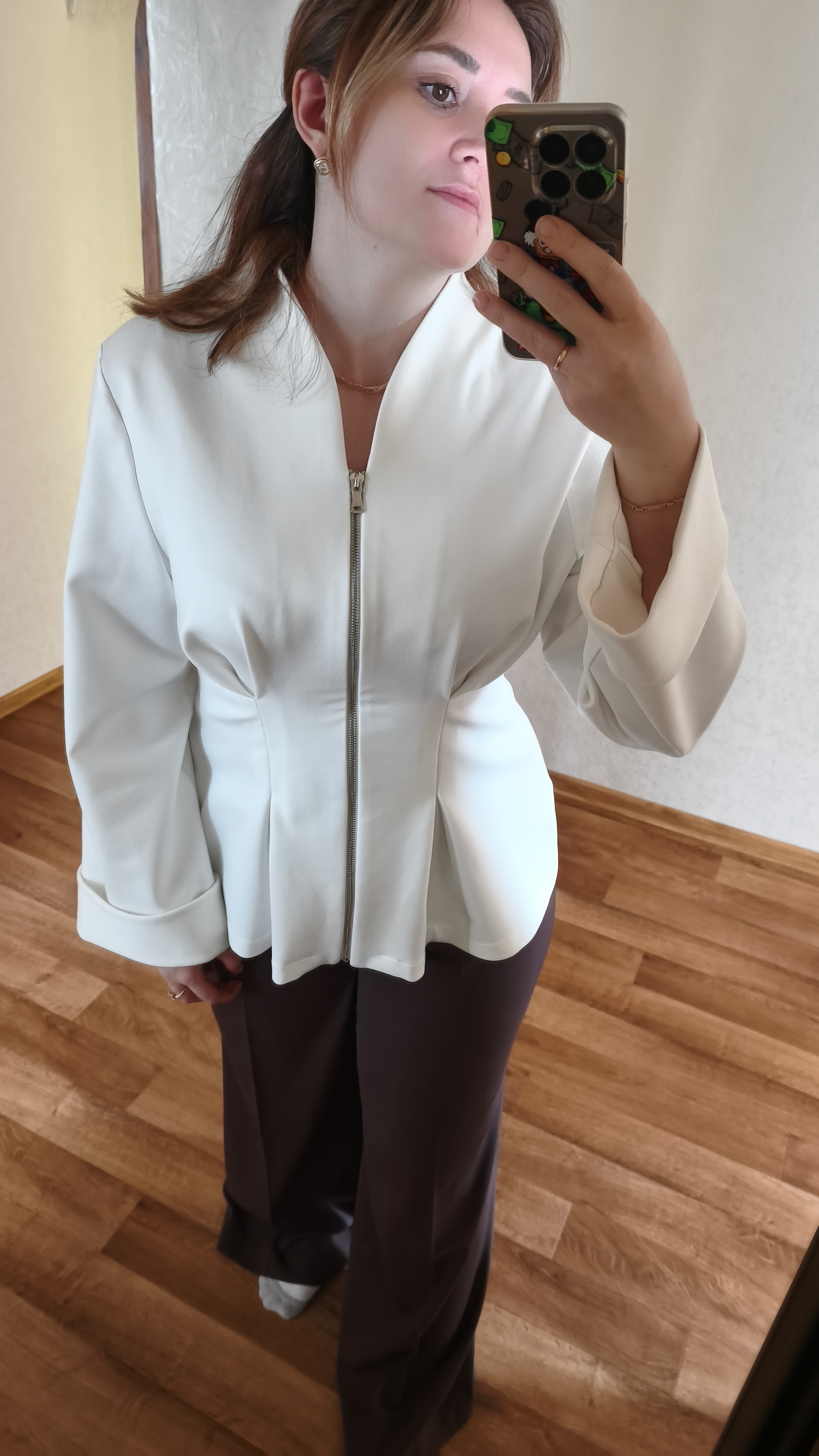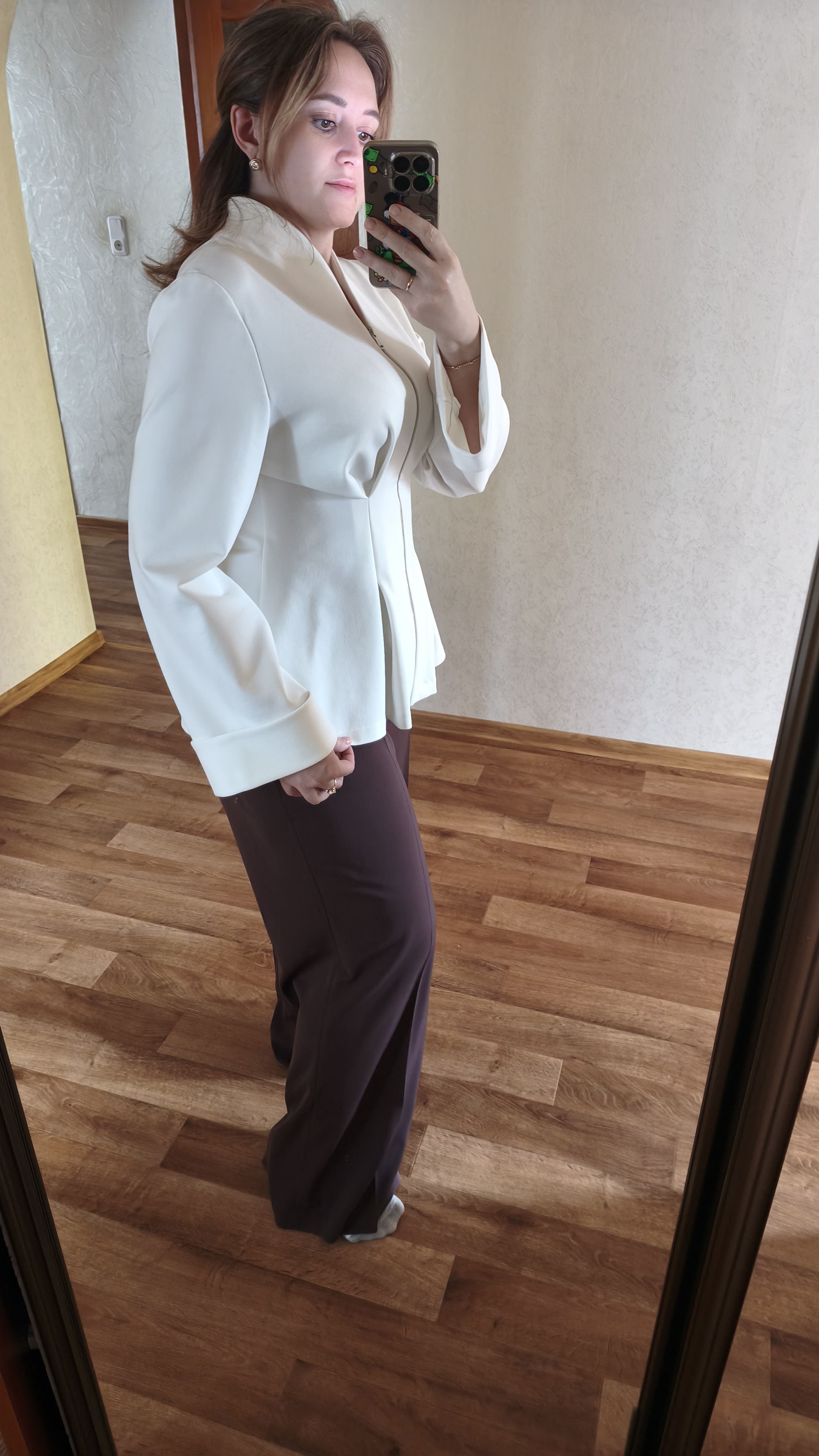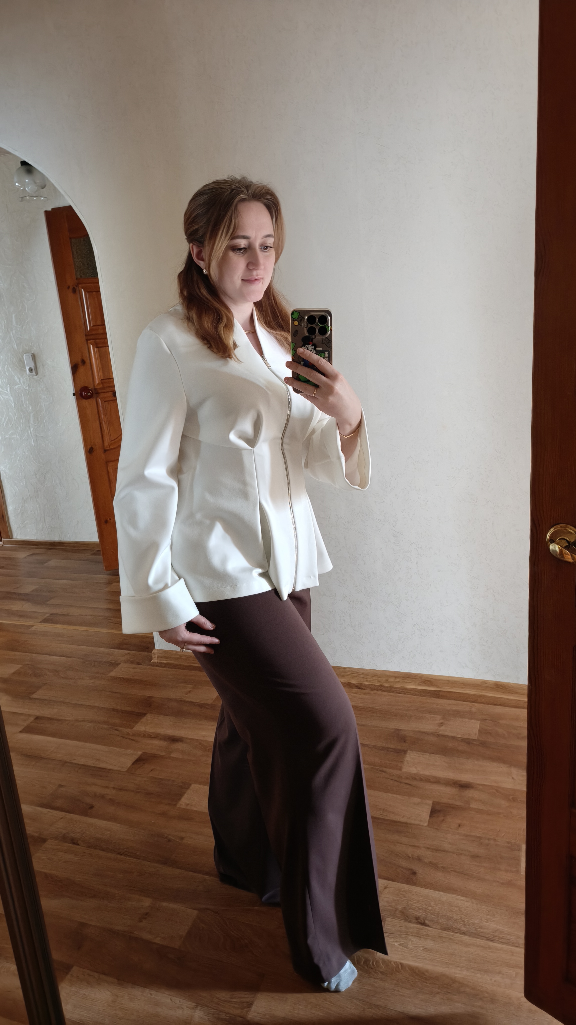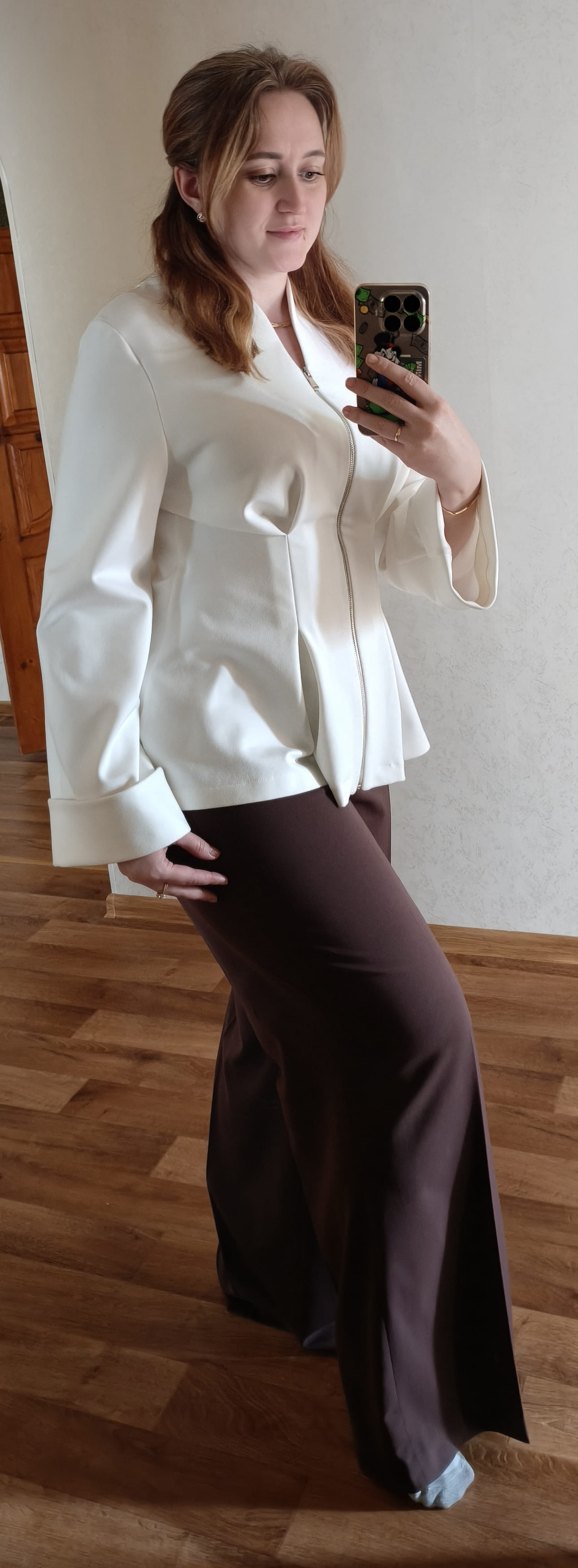 Шикарная модель, отличная выкройка, размер 40, рост 158, ПГ 2, никаких корректировок не делала, сшила в комплект с брюками Гейл из экозамши