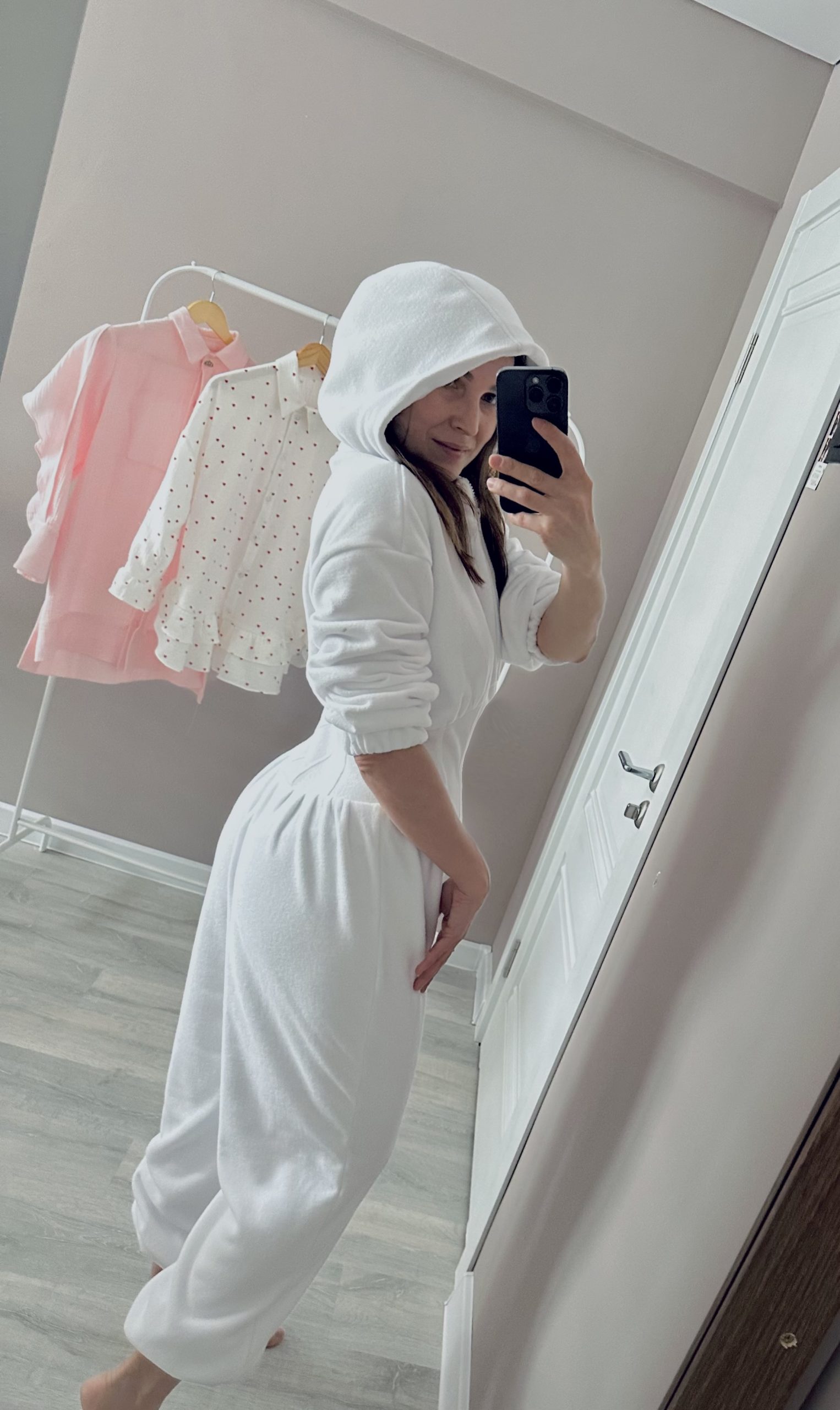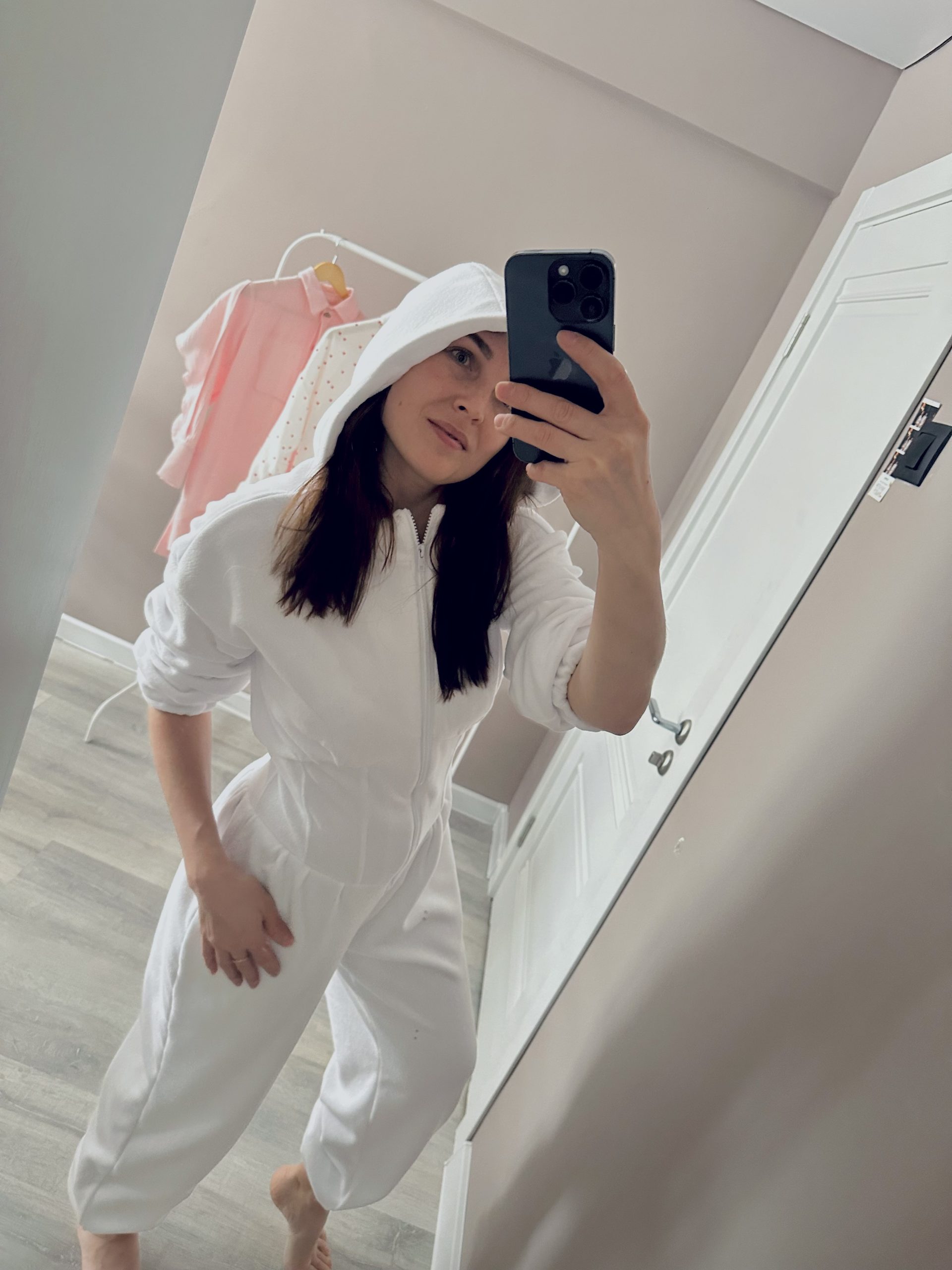 В моменте я стала ощущать себя тумбочкой в семье Кардашьян))) По итогу распорола по бокам, отрезала по 1см и собрала обратно. Также сделала сборку по всей задней части и урезала корсет (потому что он торчал). Модель классная и удобная, просто нужно было подогнать её под особенности моего туловища. 😅