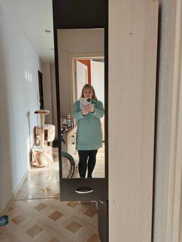 Платье проучилось просто классное, использовала трикотаж альпака, немного приподняла плечи и сделала манжет